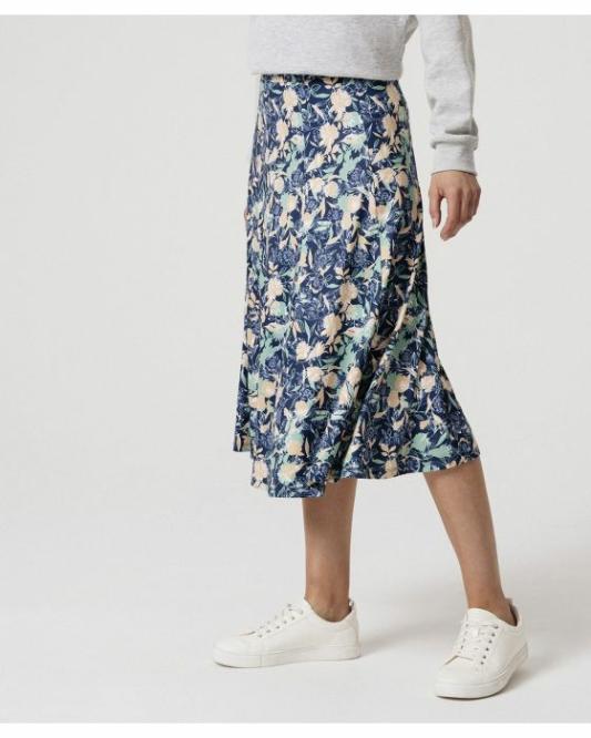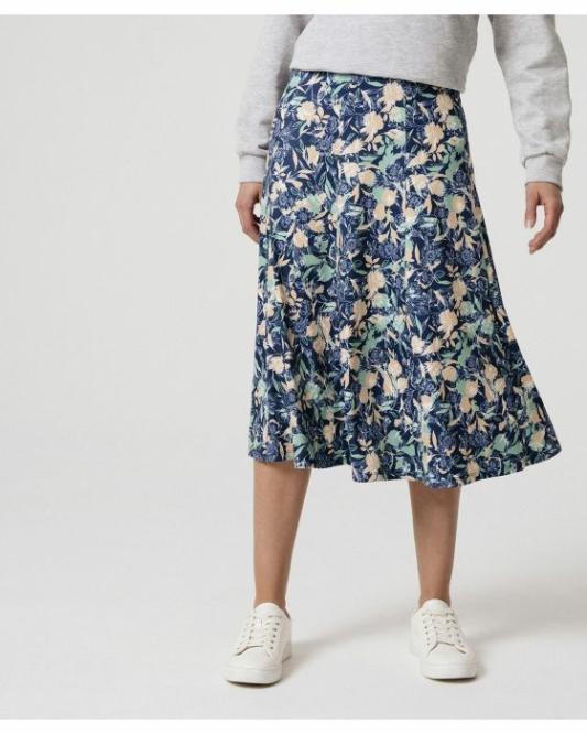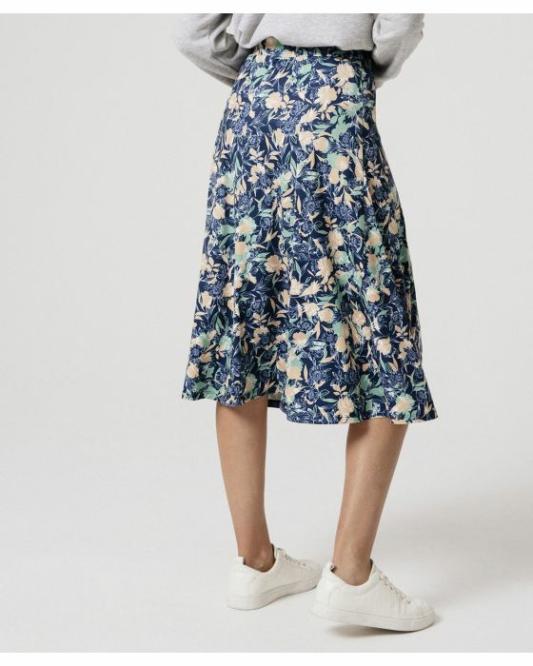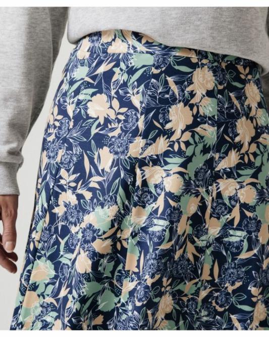 Femme Damart Jupes | Jupe Fleurie Évasée Marine Fleuri