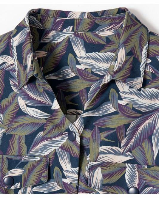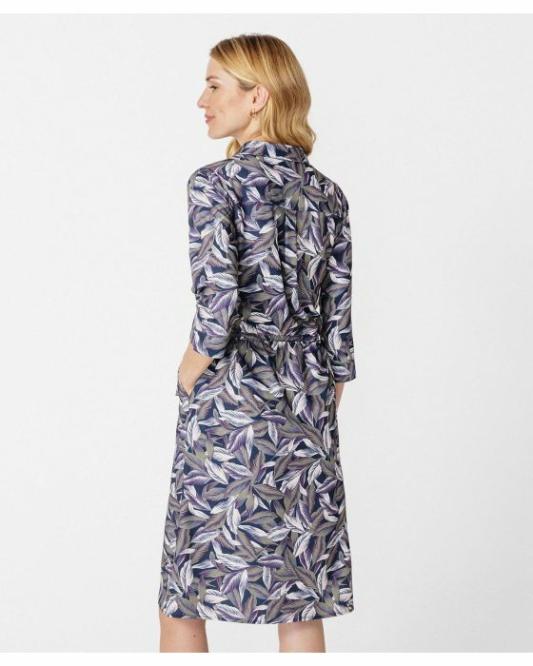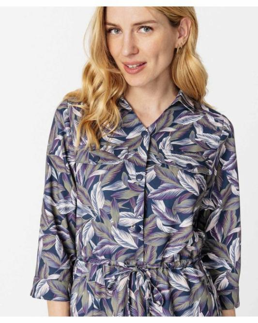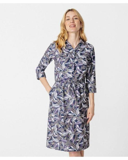Femme Damart Robes, Combinaisons | Robe En Crêpe Taille Coulissée Marine Imp. Feuillage