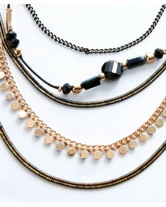 Femme Damart Sacs, | Collier Multi-Rangs Doré Et Noir Noir Assortis