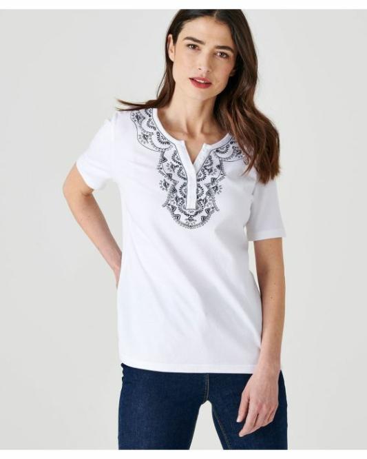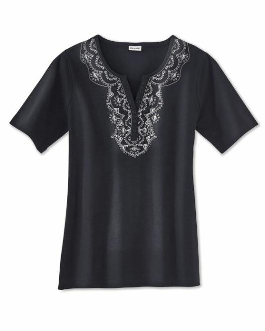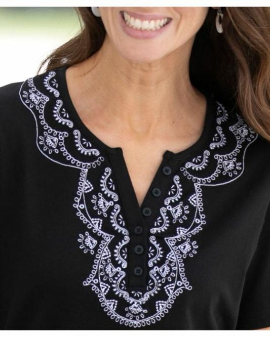 Femme Damart Tee-Shirts | Tee-Shirt Brodé Coton Noir