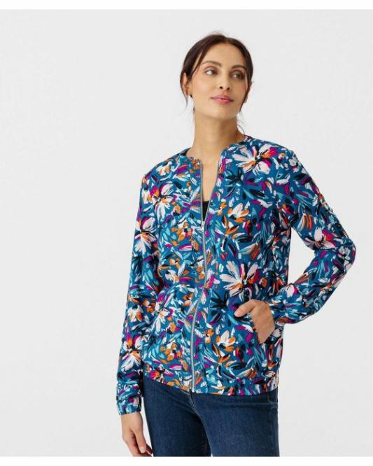 Femme Damart Vestes, Manteaux | Veste Zippée Imprimée Bleu Imprimé