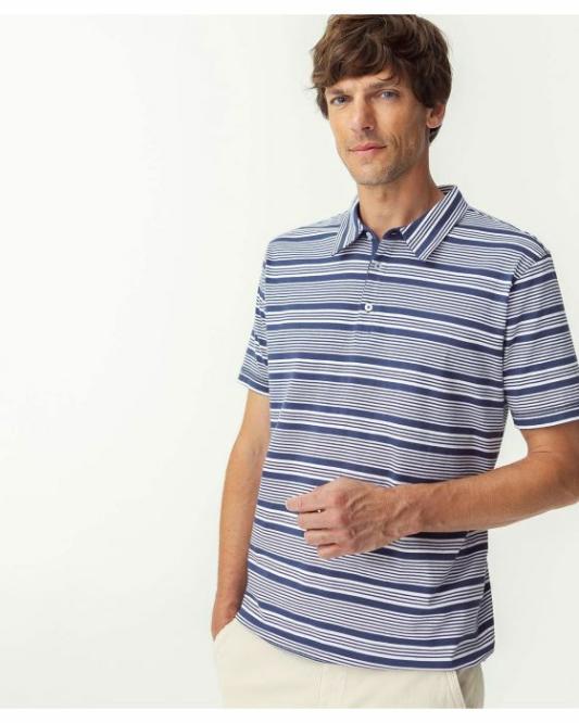Homme Damart Tee-Shirts, Polos | Polo Maille Jersey Rayé Pétrole Rayé